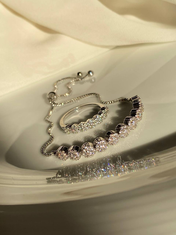 رنگ نگینها و فریم کاملا نقره ای و درخشان -قابل تنظیم برای انواع مچ ها-آبکاری نقره شده و ثبات رنگ عالی-تولید ژوپینگ-نگینها مخراج کاری و بدون ریزش