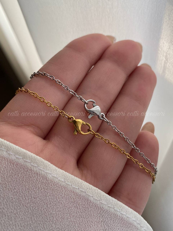 زنجیر استیل و رنگ ثابت-پلاک آبکاری شده-نگینها مخراج کاری شده-طول زنجیر ۴۷ سانت-در دورنگ طلایی و نقره ای✨🌻