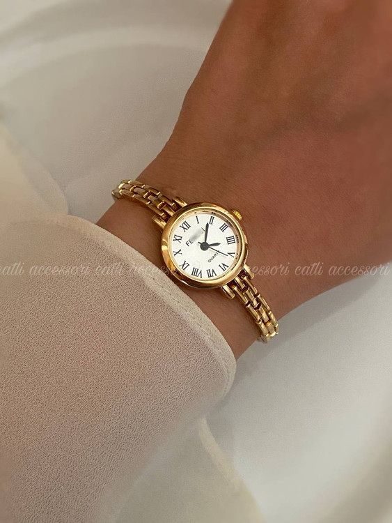 ساعت فنسی مینیمال طلایی صفحه نقره ای