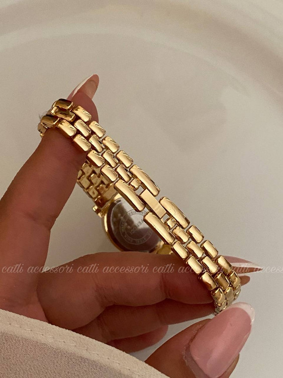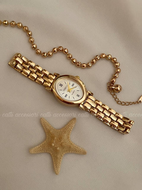 ساعت فنسی بیضی طلایی صفحه نقره ای