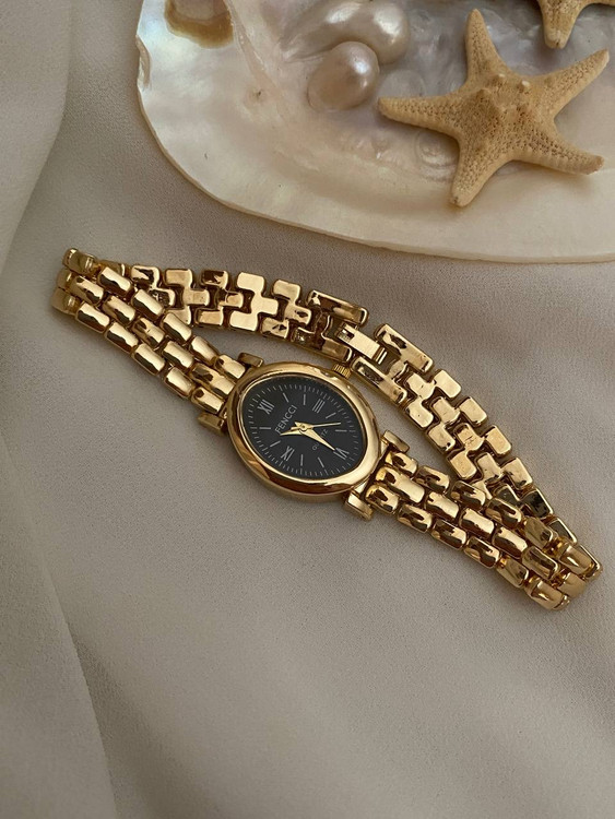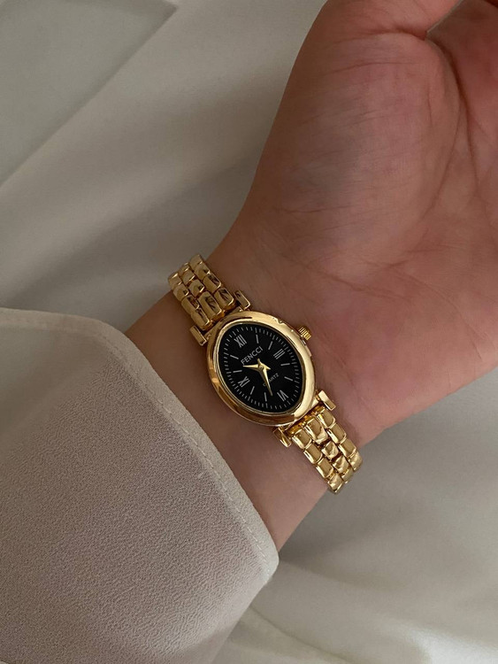 ساعت فنسی بیضی طلایی مشکی