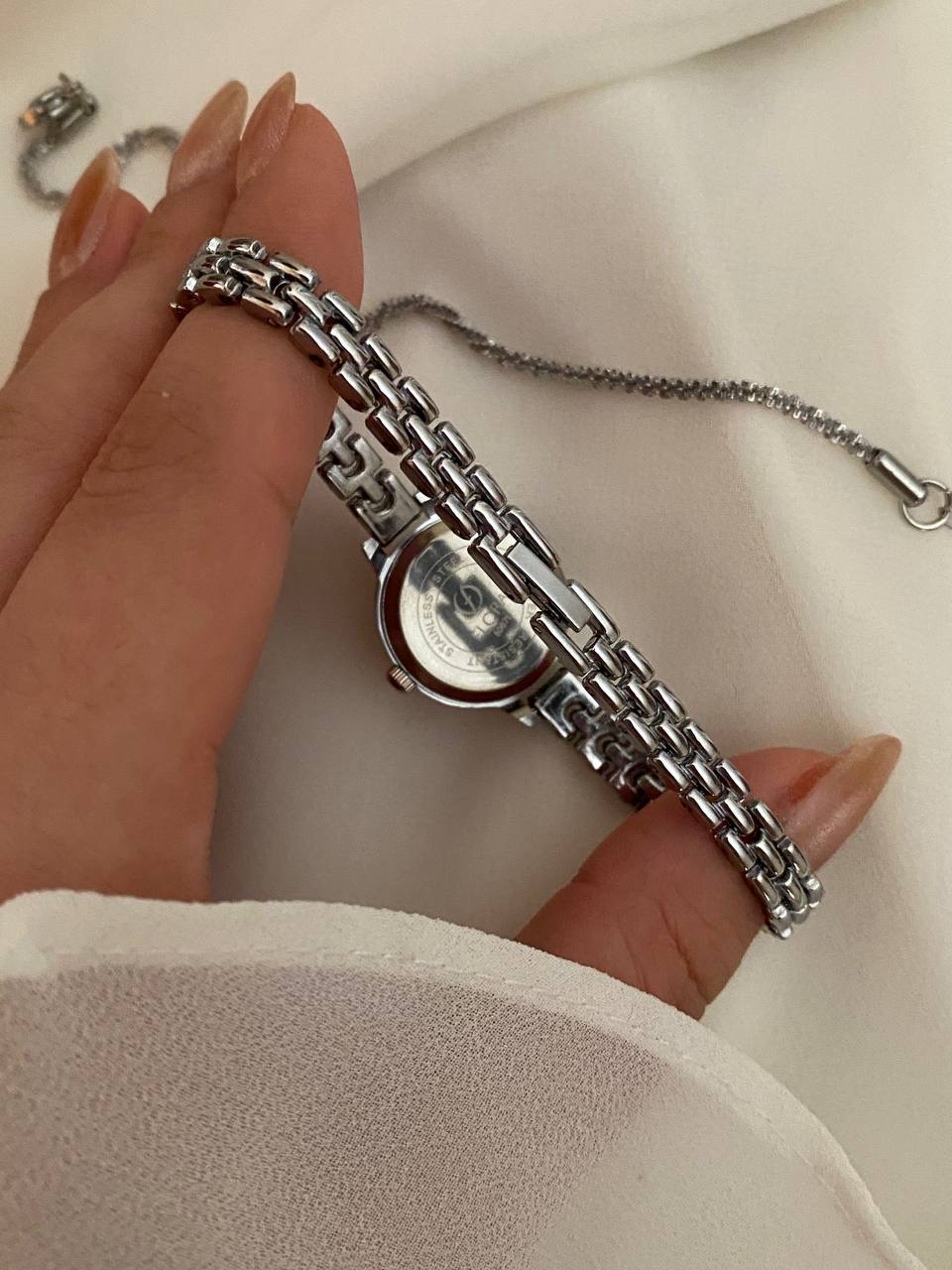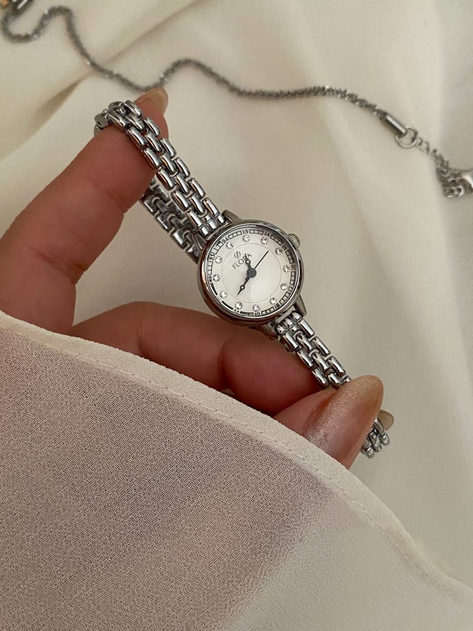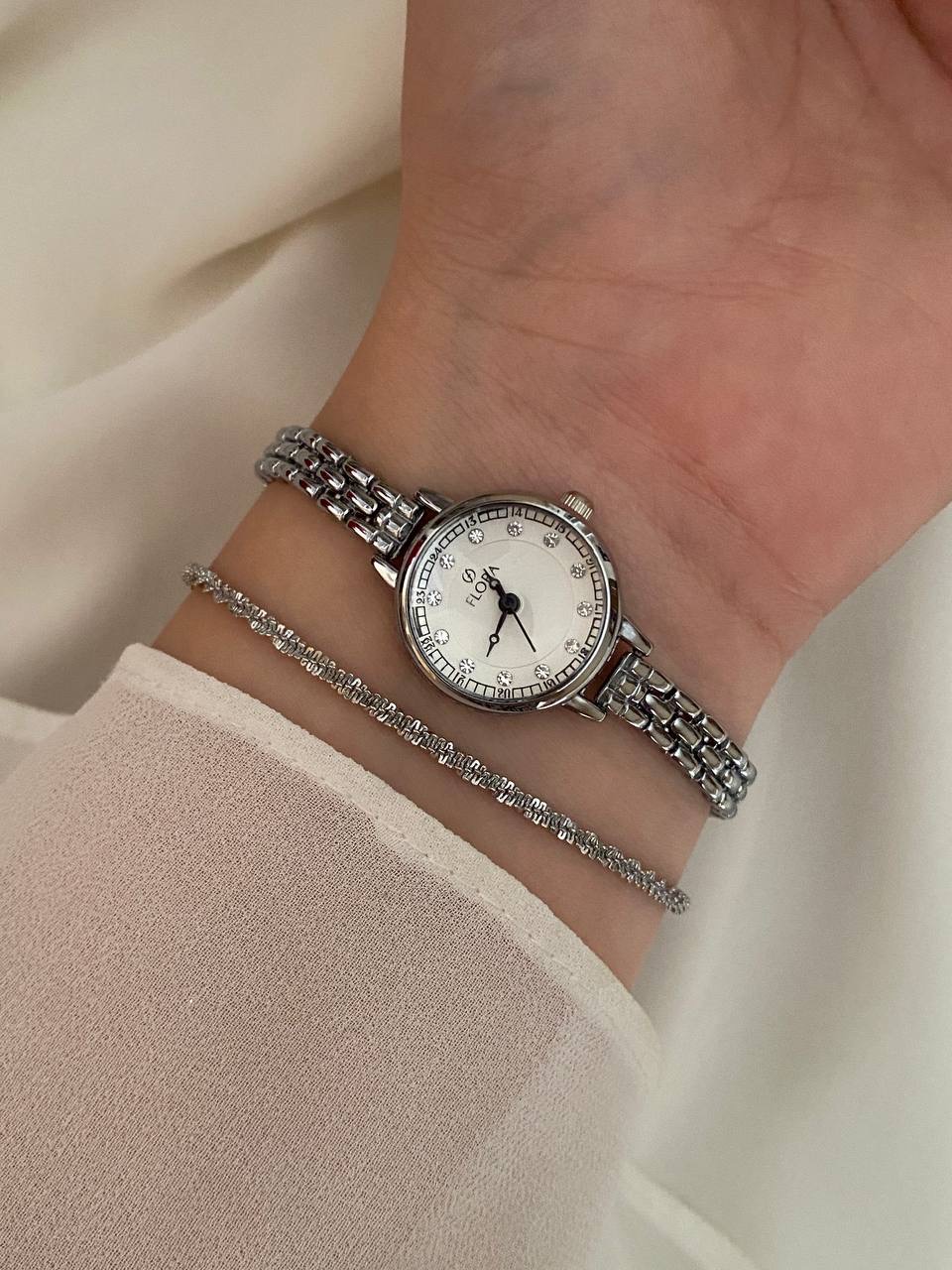 ساعت فلورا نگینی نقره ای