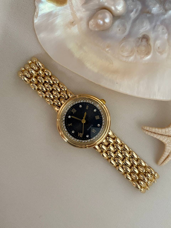 ساعت هایدی گرد طلایی مشکی
