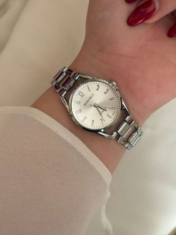 ساعت بند آجری نقره ای