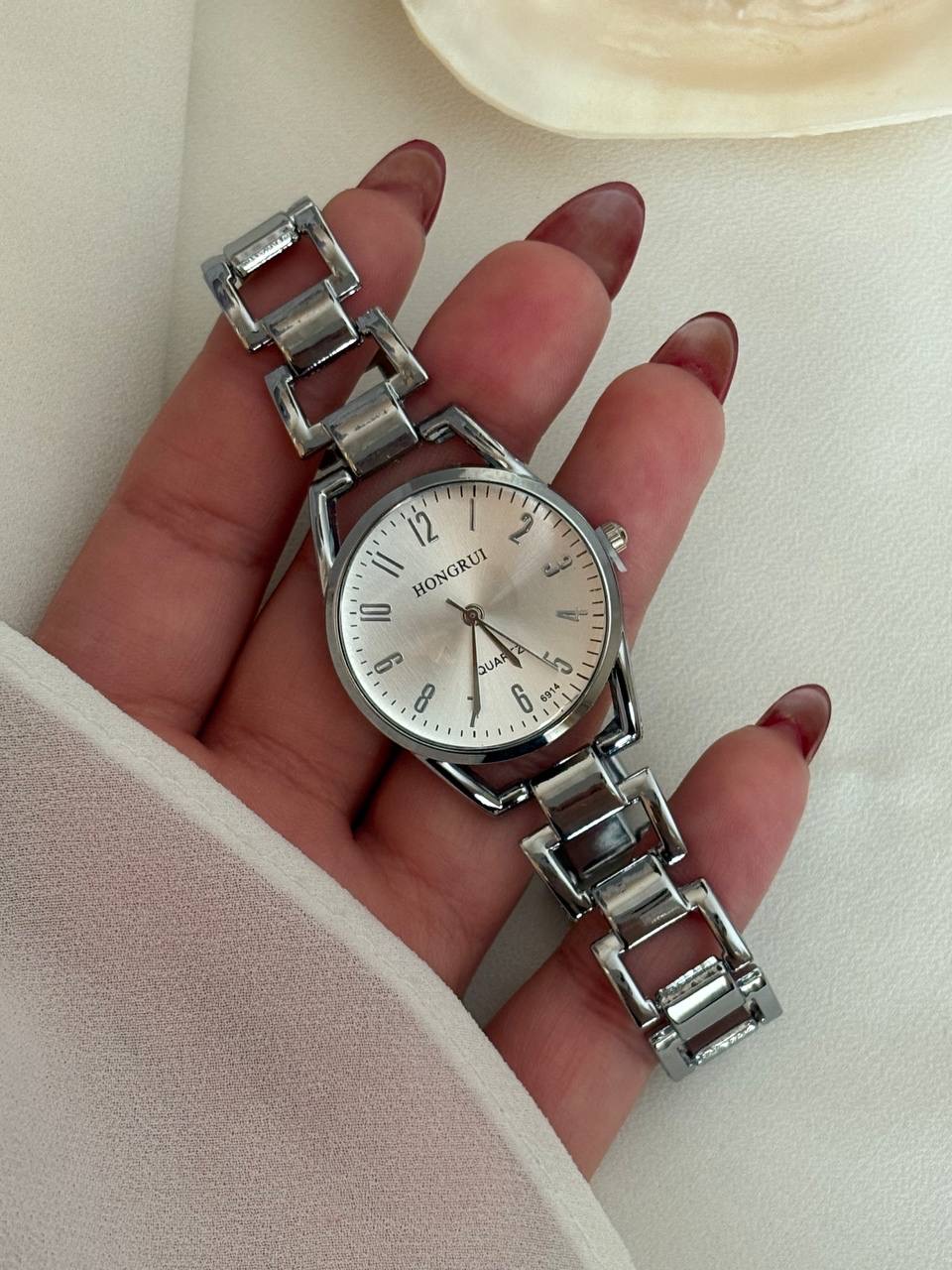 ساعت بند آجری نقره ای