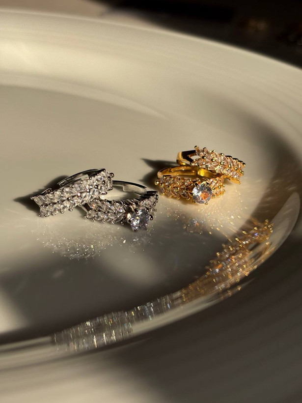نگینها سفید(بی رنگ) و فریم کارها طلایی/نقره ای -قابل تنظیم برای چهار سایز اصلی۶-۷-۸-۹- ثبات رنگ خوب-نگینها مخراج کاری شده و چسبی نیستند- ❤️