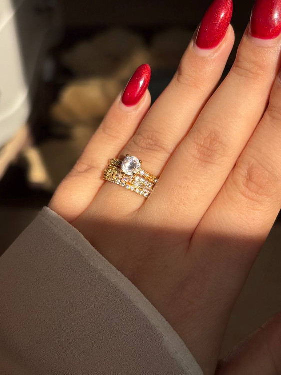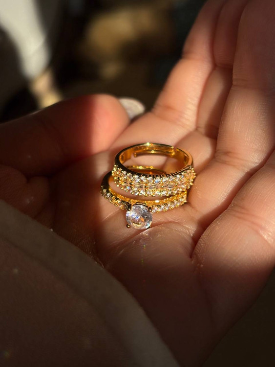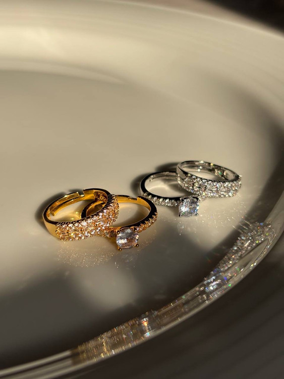 نگینها سفید(بی رنگ) و فریم کارها طلایی/نقره ای -قابل تنظیم برای چهار سایز اصلی۶-۷-۸-۹- ثبات رنگ خوب-نگینها مخراج کاری شده و چسبی نیستند- ❤️