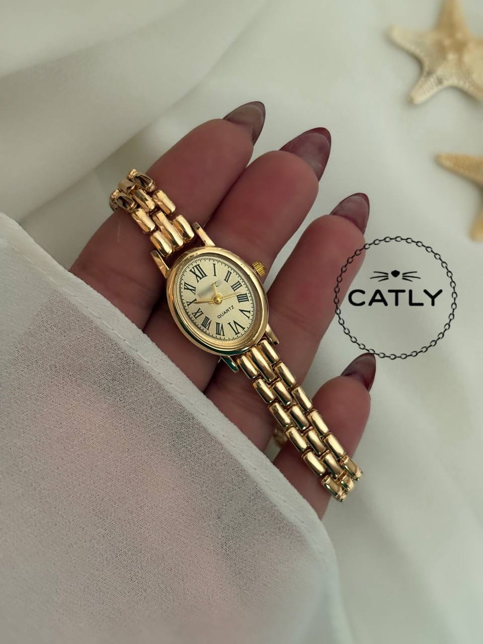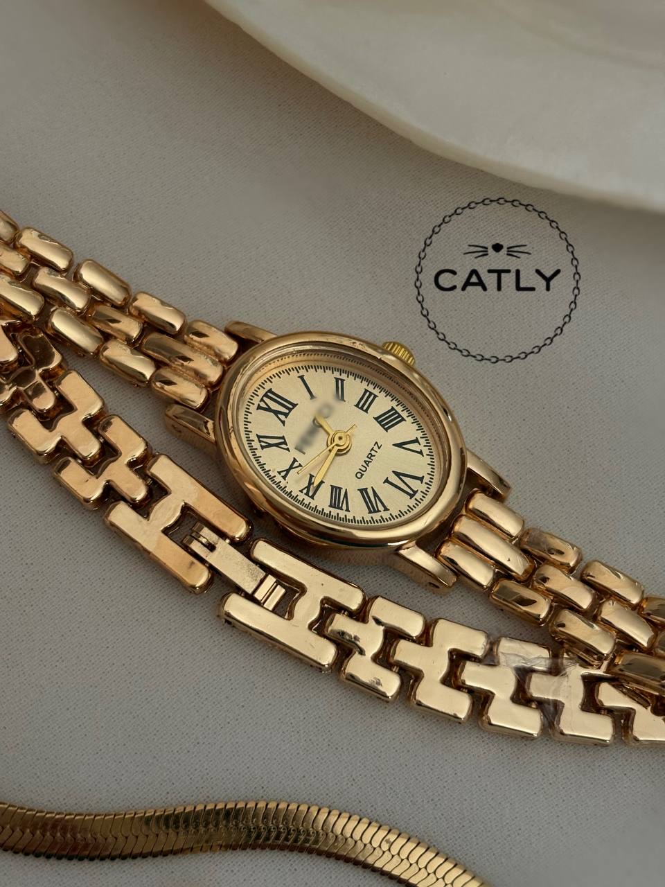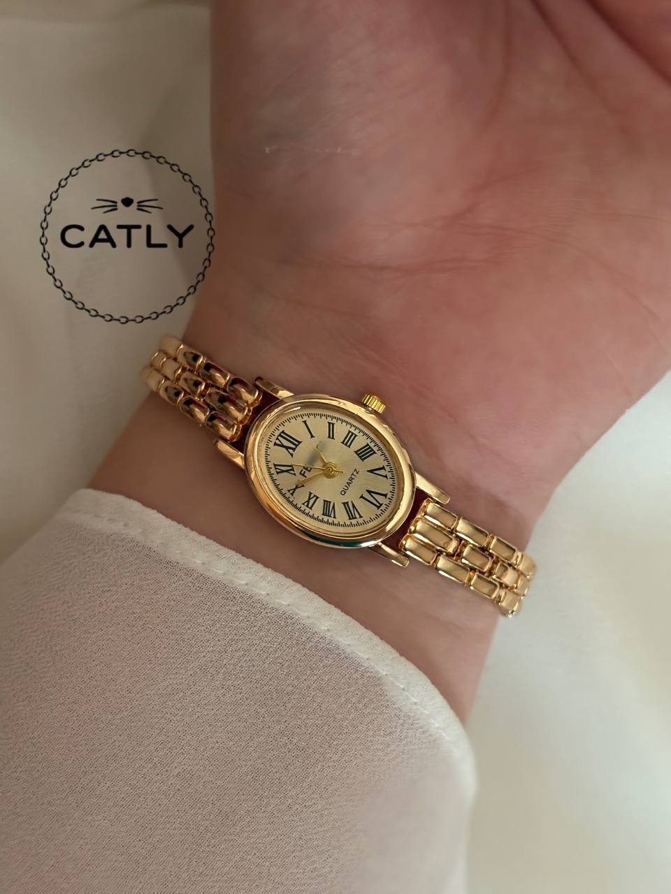 ساعت بیضی ظریف تمام طلایی