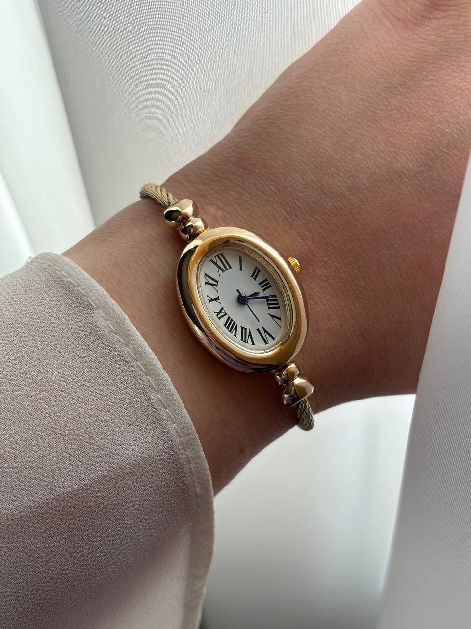 ساعت بنگلی بیضی طلایی ص سفید