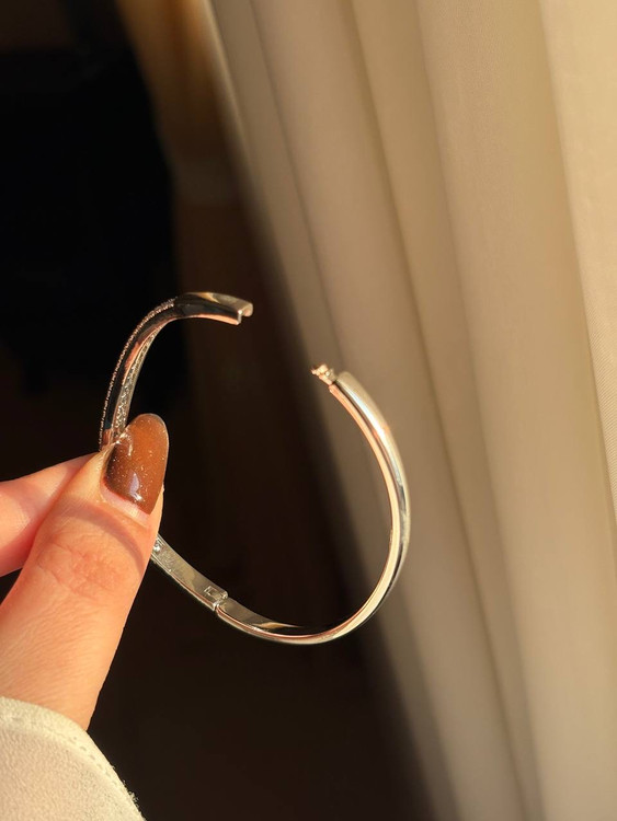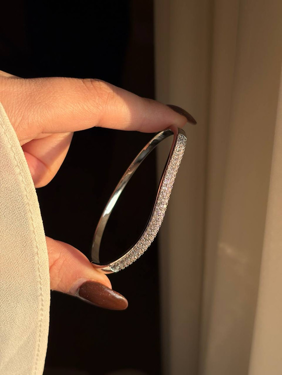 دستبند بنگل با کیفیت نقره ای-دارای قفل کنار دستبند-قطر دستبند ۶ سانت- مناسب دستهای متوسط-نگینها مخراج کاری شده و چسبی نیستند❇️