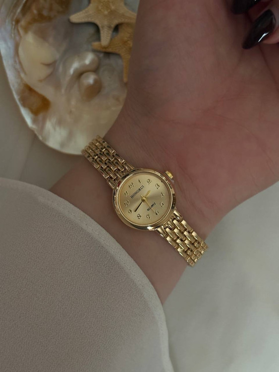 ساعت گرد مینیمال تمام طلایی